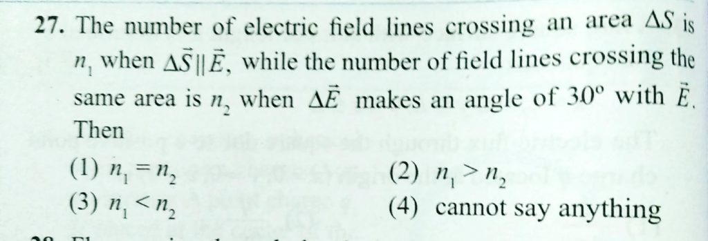 The number of electric field lines crossing an area ΔS is n1 when ΔS→∣∣E→, while the number of field lines crossing the same area is n2 when ΔE makes an angles of 30∘ with E. Then The number of electric field lines crossing an area ΔS is n1 when ΔS→∣∣E→ while the number of field lines crossing the same area is n2 when ΔE makes an angles of 30∘ with E. Then October 31, 2020 Category: Uncategorised (JEE Advanced Physics by BM Sharma + GMP Solutions) , Facebook Messenger WhatsApp Share this:TwitterFacebook Related