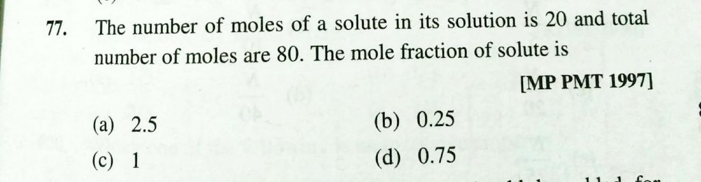 THe number of moles of a solute in its solution is 20 and total number of moles are 80 . The mole fraction of solute is THe number of moles of a solute in its solution is 20 and total number of moles are 80 . The mole fraction of solute is December 11, 2020 Category: Uncategorised (JEE Advanced Physics by BM Sharma + GMP Solutions) , Facebook Messenger WhatsApp Share this:TwitterFacebook Related