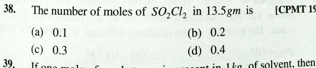 The number of moles of SO2CL2 in 13.5 gm is (a) 0.1 (b) 0.2 (c) 0.3 (d) 0.4 The number of moles of SO2CL2 in 13.5 gm is (a) 0.1 (b) 0.2 (c) 0.3 (d) 0.4 December 11, 2020 Category: Uncategorised (JEE Advanced Physics by BM Sharma + GMP Solutions) , Facebook Messenger WhatsApp Share this:TwitterFacebook Related