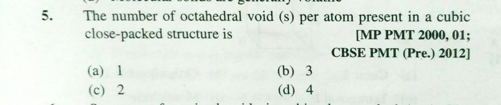 The number of octahedral void (s) per atom present in a cubic close – packed structure is The number of octahedral void (s) per atom present in a cubic close - packed structure is December 16, 2020 Category: Uncategorised (JEE Advanced Physics by BM Sharma + GMP Solutions) , Facebook Messenger WhatsApp Share this:TwitterFacebook Related