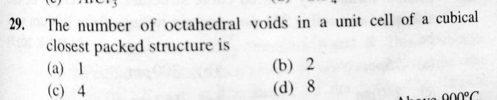 THe number of octahedral voids in a unit cell of a cubical closest packed structure is (a) 1 (b) 2 (c) 4 (d) 8 THe number of octahedral voids in a unit cell of a cubical closest packed structure is (a) 1 (b) 2 (c) 4 (d) 8 December 16, 2020 Category: Uncategorised (JEE Advanced Physics by BM Sharma + GMP Solutions) , Facebook Messenger WhatsApp Share this:TwitterFacebook Related