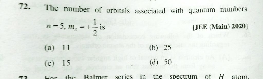 The number of orbitals associated with quantum numbers n = 5, ms = +1/2 is (a) 11 (b) 25 (c) 15 (d) 50 ms = +1/2 is (a) 11 (b) 25 (c) 15 (d) 50 The number of orbitals associated with quantum numbers n = 5 November 30, 2020 Category: Uncategorised (JEE Advanced Physics by BM Sharma + GMP Solutions) , Facebook Messenger WhatsApp Share this:TwitterFacebook Related