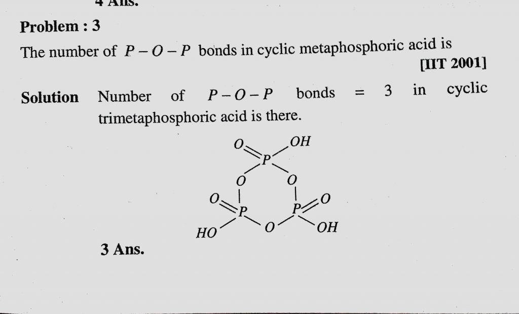 The number of P-O-P bonds in cyclic metaphosphoric acid is The number of P-O-P bonds in cyclic metaphosphoric acid is November 29, 2020 Category: Uncategorised (JEE Advanced Physics by BM Sharma + GMP Solutions) , Facebook Messenger WhatsApp Share this:TwitterFacebook Related