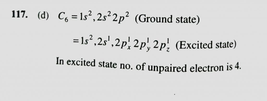 The number of unpaired electrons in carbon atom in excited state is (a) one (b) two (c) three (d) four The number of unpaired electrons in carbon atom in excited state is (a) one (b) two (c) three (d) four November 29, 2020 Category: Uncategorised (JEE Advanced Physics by BM Sharma + GMP Solutions) , Facebook Messenger WhatsApp Share this:TwitterFacebook Related