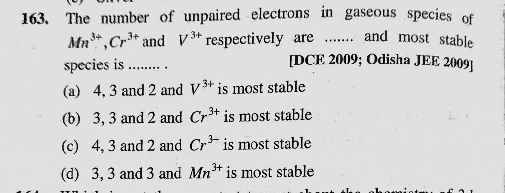 The number of unpaired electrons in gaseous species of Mn 3+, Cr 3+ and V 3+ respectively are ………….. and most stable species is ………………………….. Cr 3+ and V 3+ respectively are .............. and most stable species is ................................ The number of unpaired electrons in gaseous species of Mn 3+ November 30, 2020 Category: Uncategorised (JEE Advanced Physics by BM Sharma + GMP Solutions) , Facebook Messenger WhatsApp Share this:TwitterFacebook Related
