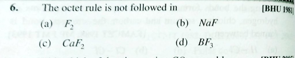 The octet rule is not followed in (a) F2 (b) NaF (c) CaF2 (d) BF3 The octet rule is not followed in (a) F2 (b) NaF (c) CaF2 (d) BF3 December 1, 2020 Category: Uncategorised (JEE Advanced Physics by BM Sharma + GMP Solutions) , Facebook Messenger WhatsApp Share this:TwitterFacebook Related