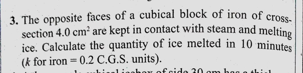 The opposite face of a cubical block of iron of cross-section 4.0 cm^2 are kept in contact with steam and melting ice. Calculate the quantity of ice melted in 10 minutes The opposite face of a cubical block of iron of cross-section 4.0 cm^2 are kept in contact with steam and melting ice. Calculate the quantity of ice melted in 10 minutes October 24, 2020 Category: Uncategorised (JEE Advanced Physics by BM Sharma + GMP Solutions) , Facebook Messenger WhatsApp Share this:TwitterFacebook Related