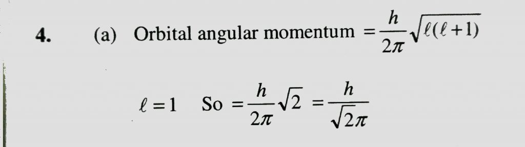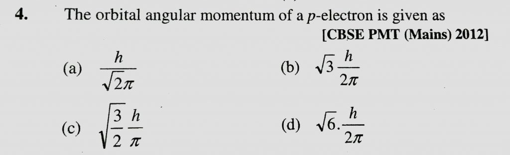 The orbital angular momentum of a p – electron is given as (a) h/ root 2pie (b) root 3 h/ 2pie (c) root 3/2 h/ pie (d) root6. h /2 pie The orbital angular momentum of a p - electron is given as (a) h/ root 2pie (b) root 3 h/ 2pie (c) root 3/2 h/ pie (d) root6. h /2 pie November 29, 2020 Category: Uncategorised (JEE Advanced Physics by BM Sharma + GMP Solutions) , Facebook Messenger WhatsApp Share this:TwitterFacebook Related
