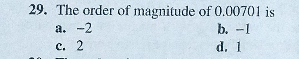 The order of magnitude of 0.00701 is The order of magnitude of 0.00701 is September 15, 2020 Category: Uncategorised (JEE Advanced Physics by BM Sharma + GMP Solutions) , Facebook Messenger WhatsApp Share this:TwitterFacebook Related