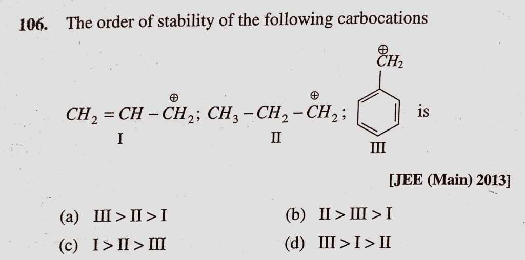 The order of stability of the following carbocations (a) III > II > I (b) II > III > I (c) I > II > III The order of stability of the following carbocations (a) III > II > I (b) II > III > I (c) I > II > III December 11, 2020 Category: Uncategorised (JEE Advanced Physics by BM Sharma + GMP Solutions) , Facebook Messenger WhatsApp Share this:TwitterFacebook Related