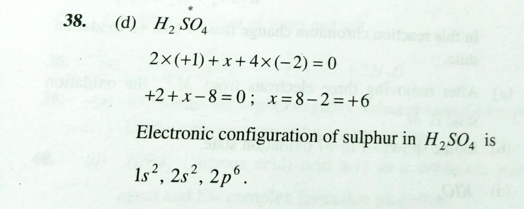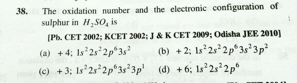 The oxidation number and the electronic configuration of sulphur in H2SO4 is The oxidation number and the electronic configuration of sulphur in H2SO4 is November 24, 2020 Category: Uncategorised (JEE Advanced Physics by BM Sharma + GMP Solutions) , Facebook Messenger WhatsApp Share this:TwitterFacebook Related