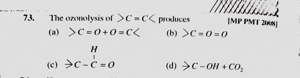 The ozonolysis of > C = C C = O + O + C C = O = O The ozonolysis of > C = C C = O + O + C C = O = O December 13, 2020 Category: Uncategorised (JEE Advanced Physics by BM Sharma + GMP Solutions) , Facebook Messenger WhatsApp Share this:TwitterFacebook Related
