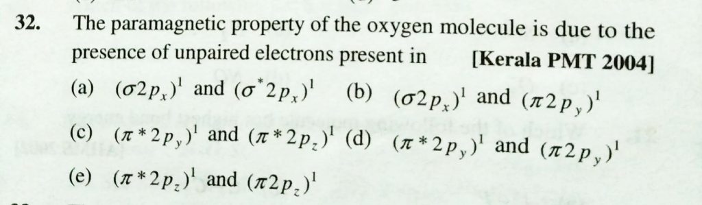 The paramegnetic property of the oxygen molecule is due to the presence of unparied electrons present in The paramegnetic property of the oxygen molecule is due to the presence of unparied electrons present in December 8, 2020 Category: Uncategorised (JEE Advanced Physics by BM Sharma + GMP Solutions) , Facebook Messenger WhatsApp Share this:TwitterFacebook Related