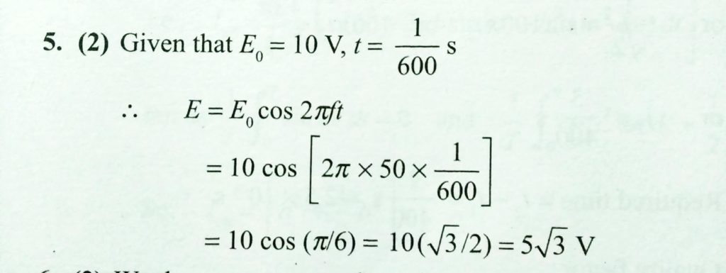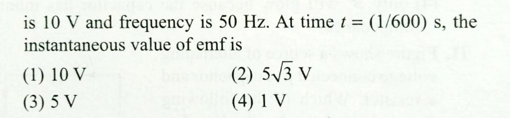 The peak value of an alternating e.m.f E given by E = E 0 cosω t is 10 V and frequency is 50 Hz. At time t = ( 1/600 ) s, the instantaneous value of e.m.f is the instantaneous value of e.m.f is The peak value of an alternating e.m.f E given by E = E 0 cosω t is 10 V and frequency is 50 Hz. At time t = ( 1/600 ) s October 27, 2020 Category: Uncategorised (JEE Advanced Physics by BM Sharma + GMP Solutions) , Facebook Messenger WhatsApp Share this:TwitterFacebook Related