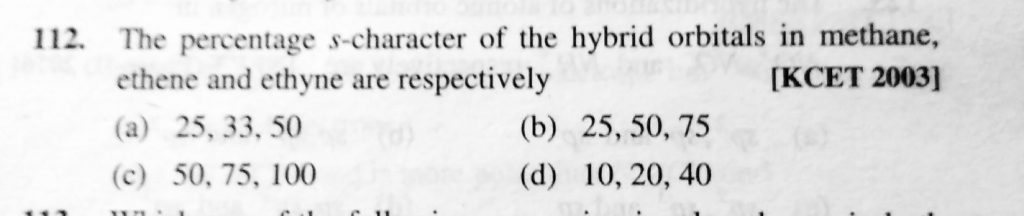 The percentage s – character of the hybrid orbitals in methane , ethene and ethyne are respectively ethene and ethyne are respectively The percentage s - character of the hybrid orbitals in methane December 6, 2020 Category: Uncategorised (JEE Advanced Physics by BM Sharma + GMP Solutions) , Facebook Messenger WhatsApp Share this:TwitterFacebook Related