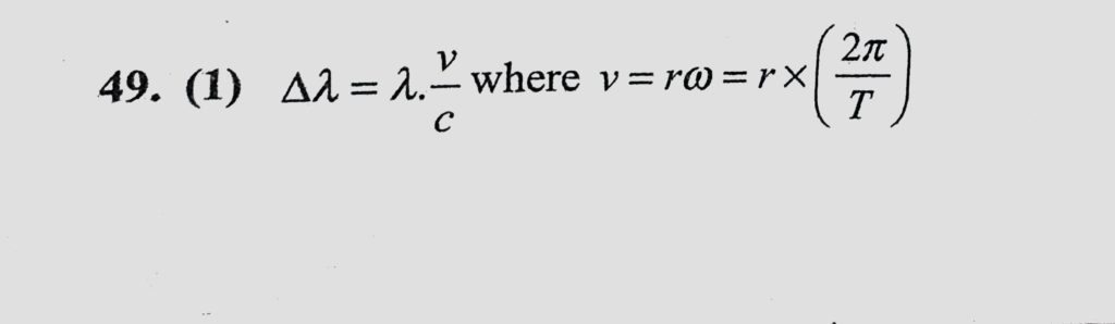 The periodic time of rotation of a certain star is 22 days and its radius is 7 * 10^8 metre. If the wavelength of light emitted by its surface be 4320 A, the Doppler shift will be the Doppler shift will be The periodic time of rotation of a certain star is 22 days and its radius is 7 * 10^8 metre. If the wavelength of light emitted by its surface be 4320 A October 12, 2020 Category: Uncategorised (JEE Advanced Physics by BM Sharma + GMP Solutions) , Facebook Messenger WhatsApp Share this:TwitterFacebook Related