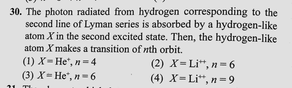 The photon radiated from hydrogen corresponding to the second line of Lyman series is absorbed by a hydrogen-like atom X in the second excited state. Then, the hydrogen-like atom the hydrogen-like atom The photon radiated from hydrogen corresponding to the second line of Lyman series is absorbed by a hydrogen-like atom X in the second excited state. Then October 15, 2020 Category: Uncategorised (JEE Advanced Physics by BM Sharma + GMP Solutions) , Facebook Messenger WhatsApp Share this:TwitterFacebook Related