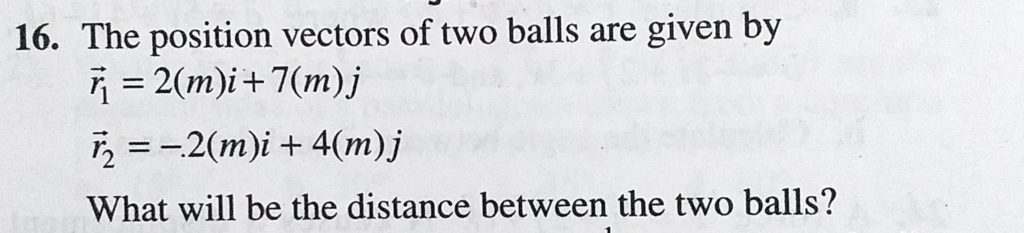 The position vectors of two balls are given by r1 = 2 (m)i + 7 (m) j r2 = -2 (m)i + 4 (m)j What will be the distance between the two balls? The position vectors of two balls are given by r1 = 2 (m)i + 7 (m) j r2 = -2 (m)i + 4 (m)j What will be the distance between the two balls? September 17, 2020 Category: Uncategorised (JEE Advanced Physics by BM Sharma + GMP Solutions) , Facebook Messenger WhatsApp Share this:TwitterFacebook Related