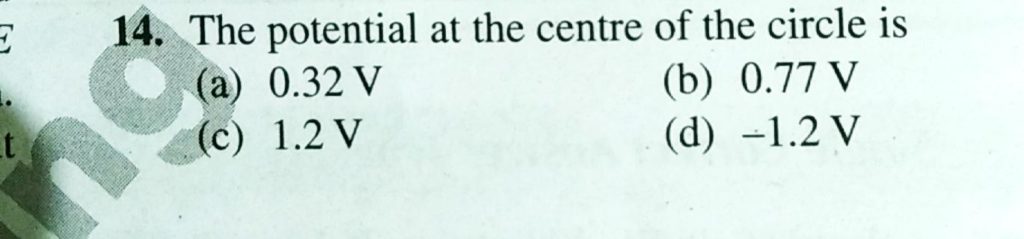 The potential at the centre of the circle is The potential at the centre of the circle is September 17, 2020 Category: Uncategorised (JEE Advanced Physics by BM Sharma + GMP Solutions) , Facebook Messenger WhatsApp Share this:TwitterFacebook Related