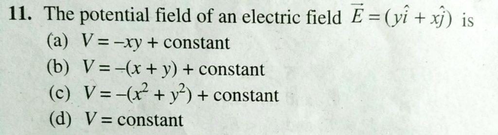 The potential field of an electric field E = ( yi + xj ) is The potential field of an electric field E = ( yi + xj ) is September 18, 2020 Category: Uncategorised (JEE Advanced Physics by BM Sharma + GMP Solutions) , Facebook Messenger WhatsApp Share this:TwitterFacebook Related