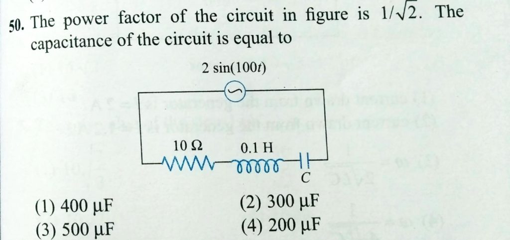 The power factor of the circuit in figure is 1/root 2. The capacitance of the circuit is equal to The power factor of the circuit in figure is 1/root 2. The capacitance of the circuit is equal to October 27, 2020 Category: Uncategorised (JEE Advanced Physics by BM Sharma + GMP Solutions) , Facebook Messenger WhatsApp Share this:TwitterFacebook Related