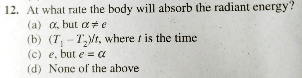 At what rate the body will absorb the radiant energy? At what rate the body will absorb the radiant energy? October 4, 2020 Category: Uncategorised (JEE Advanced Physics by BM Sharma + GMP Solutions) , Facebook Messenger WhatsApp Share this:TwitterFacebook Related