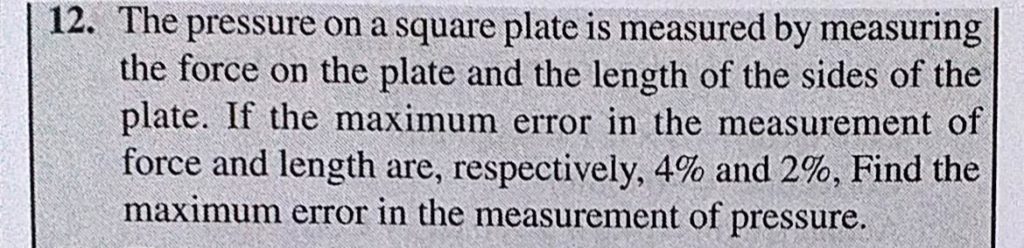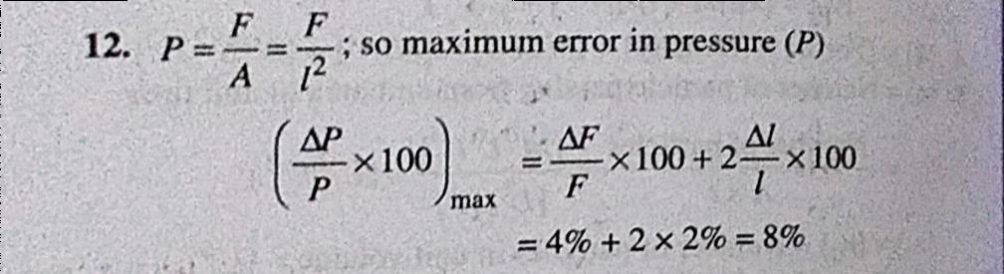 The pressure on a square plate is measured by measuring the force on the plate and the length of the sides of the plate. If the maximum error in the measurement of force and length are The pressure on a square plate is measured by measuring the force on the plate and the length of the sides of the plate. If the maximum error in the measurement of force and length are September 14, 2020 Category: Uncategorised (JEE Advanced Physics by BM Sharma + GMP Solutions) , Facebook Messenger WhatsApp Share this:TwitterFacebook Related