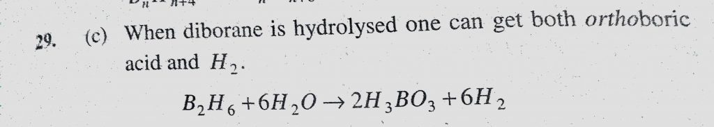 The product/s formed when diborane is hydrolysed is/are (a) B2O3 and H3BO3 (b) B2O3 only (c) H3BO3 and H2 (d) H3BO3 only The product/s formed when diborane is hydrolysed is/are (a) B2O3 and H3BO3 (b) B2O3 only (c) H3BO3 and H2 (d) H3BO3 only November 17, 2020 Category: Uncategorised (JEE Advanced Physics by BM Sharma + GMP Solutions) , Facebook Messenger WhatsApp Share this:TwitterFacebook Related