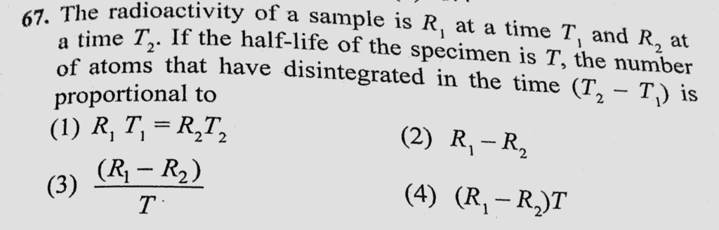 The radioactivity of a sample is R1 at a time T1 and R2 at a time T2. If the half-life of the specimen is T, the number of atoms that have disintegrated in the time (T2 – T1) is proportional to the number of atoms that have disintegrated in the time (T2 - T1) is proportional to The radioactivity of a sample is R1 at a time T1 and R2 at a time T2. If the half-life of the specimen is T October 18, 2020 Category: Uncategorised (JEE Advanced Physics by BM Sharma + GMP Solutions) , Facebook Messenger WhatsApp Share this:TwitterFacebook Related