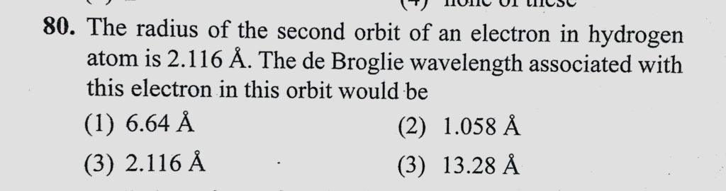 The radius of the second orbit of an electron in hydrogen atom is 2.116 A. The de Broglie wavelength associated with this electron in this orbit would be The radius of the second orbit of an electron in hydrogen atom is 2.116 A. The de Broglie wavelength associated with this electron in this orbit would be October 14, 2020 Category: Uncategorised (JEE Advanced Physics by BM Sharma + GMP Solutions) , Facebook Messenger WhatsApp Share this:TwitterFacebook Related