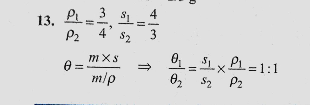 The ratio of the densities of the two bodies is 3 : 4 and the ratio of specific heats is 4 : 3. Find the ratio of their thermal capacities for unit volume ? The ratio of the densities of the two bodies is 3 : 4 and the ratio of specific heats is 4 : 3. Find the ratio of their thermal capacities for unit volume ? October 23, 2020 Category: Uncategorised (JEE Advanced Physics by BM Sharma + GMP Solutions) , Facebook Messenger WhatsApp Share this:TwitterFacebook Related