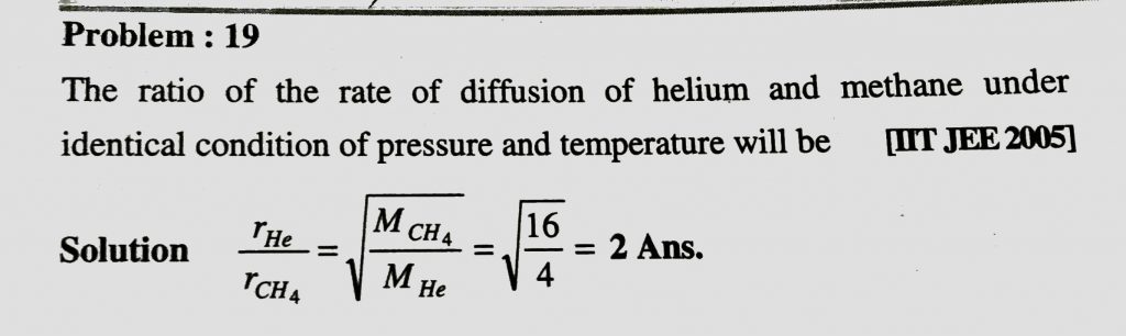The ratio of the rate of diffussion of helium and methane under identical condition of pressure and temperature will be The ratio of the rate of diffussion of helium and methane under identical condition of pressure and temperature will be February 12, 2021 Category: Uncategorised (JEE Advanced Physics by BM Sharma + GMP Solutions) , Facebook Messenger WhatsApp Share this:TwitterFacebook Related