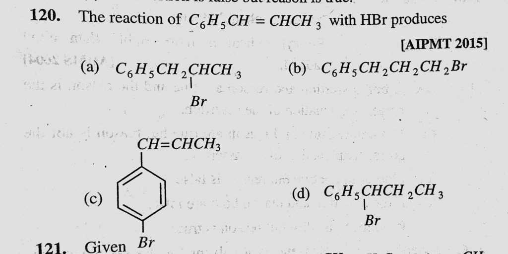 The reaction of C6H5CH = CHCH3 with HBr produces The reaction of C6H5CH = CHCH3 with HBr produces December 15, 2020 Category: Uncategorised (JEE Advanced Physics by BM Sharma + GMP Solutions) , Facebook Messenger WhatsApp Share this:TwitterFacebook Related