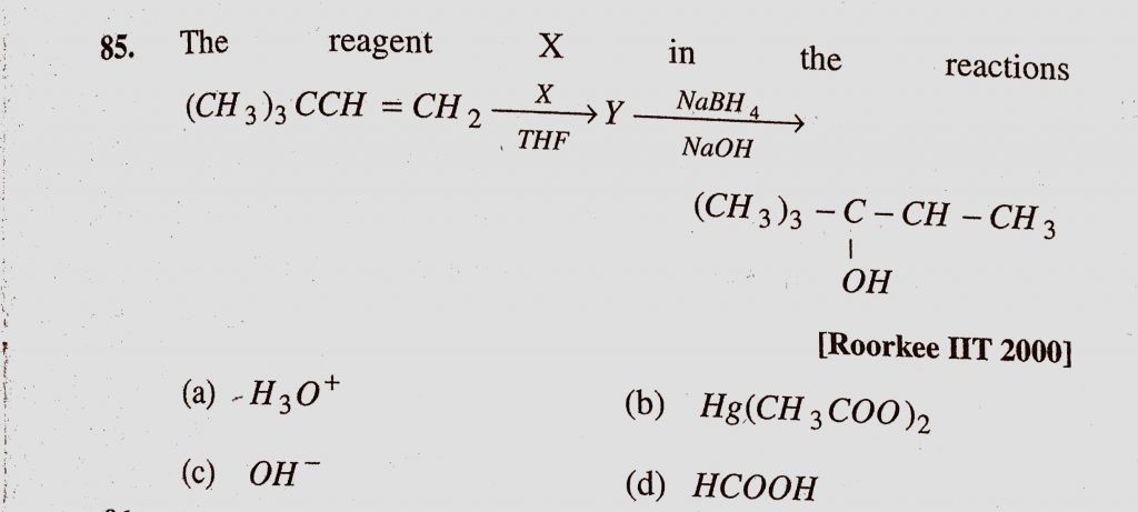 The reagent X in the reactions (CH3)3CCH = CH2 (a) H3O + (b) Hg(CH3COO)2 (c) OH- (d) HCOOH The reagent X in the reactions (CH3)3CCH = CH2 (a) H3O + (b) Hg(CH3COO)2 (c) OH- (d) HCOOH December 16, 2020 Category: Uncategorised (JEE Advanced Physics by BM Sharma + GMP Solutions) , Facebook Messenger WhatsApp Share this:TwitterFacebook Related