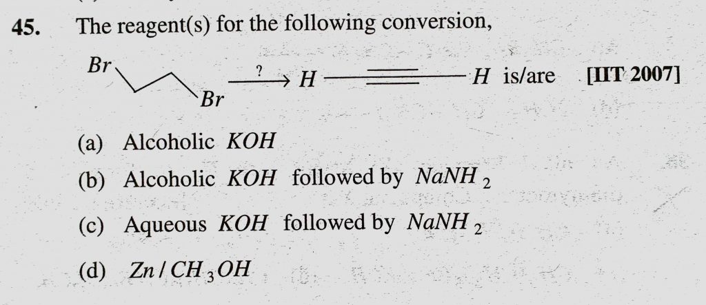 The reagent(s) for the following conversion, (a) Alcoholic KOH (b) Alcoholic KOH followed by NaNH2 (c) Aqueous KOH followed by NaNH2 (d) Zn/CH3OH (a) Alcoholic KOH (b) Alcoholic KOH followed by NaNH2 (c) Aqueous KOH followed by NaNH2 (d) Zn/CH3OH The reagent(s) for the following conversion February 9, 2021 Category: Uncategorised (JEE Advanced Physics by BM Sharma + GMP Solutions) , Facebook Messenger WhatsApp Share this:TwitterFacebook Related