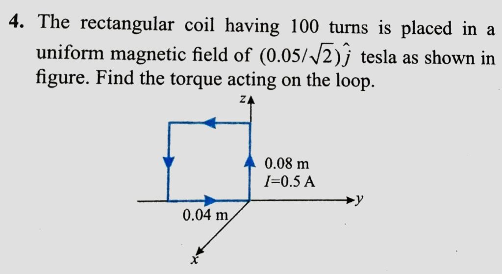 The rectangular coil having 100 turns is placed in a uniform magnetic field of ( 0.05 / root 2 ) j tesla as shown in figure. Find the torque acting on the loop. The rectangular coil having 100 turns is placed in a uniform magnetic field of ( 0.05 / root 2 ) j tesla as shown in figure. Find the torque acting on the loop. October 13, 2020 Category: Uncategorised (JEE Advanced Physics by BM Sharma + GMP Solutions) , Facebook Messenger WhatsApp Share this:TwitterFacebook Related