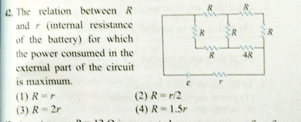 The relation between R and r ( internal resistance of the battery ) for which the power consumed in the external part of the circuit is maximum. The relation between R and r ( internal resistance of the battery ) for which the power consumed in the external part of the circuit is maximum. November 18, 2020 Category: Uncategorised (JEE Advanced Physics by BM Sharma + GMP Solutions) , Facebook Messenger WhatsApp Share this:TwitterFacebook Related