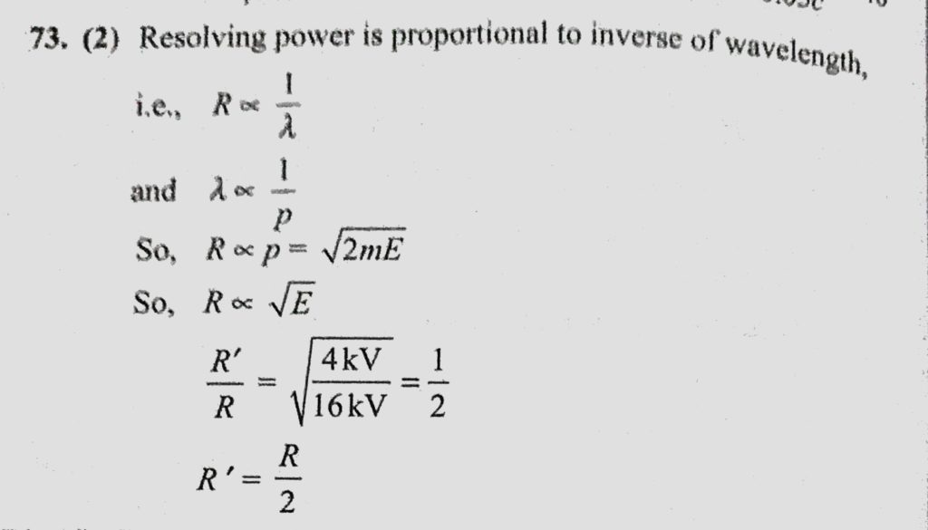 The resolving power of an electron microscope operated at 16 kV is R. The resolving power of the electron microscope when operated at 4 kV is The resolving power of an electron microscope operated at 16 kV is R. The resolving power of the electron microscope when operated at 4 kV is October 14, 2020 Category: Uncategorised (JEE Advanced Physics by BM Sharma + GMP Solutions) , Facebook Messenger WhatsApp Share this:TwitterFacebook Related