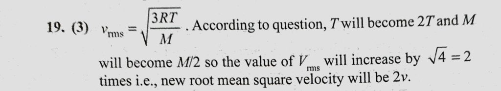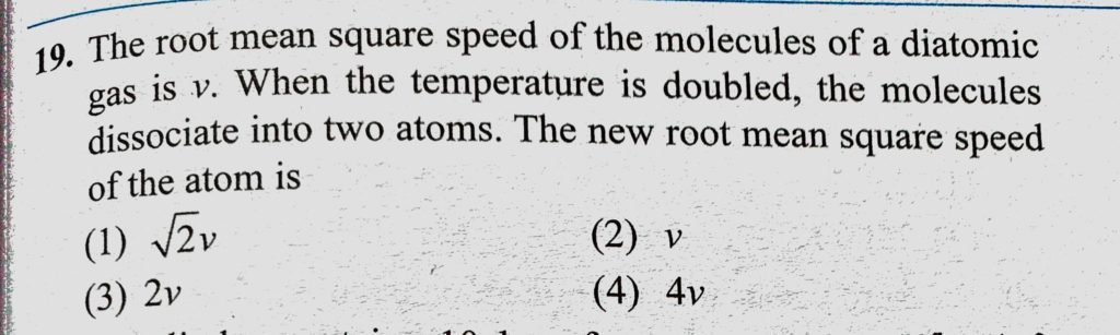 The root mean square speed of the molecules of a diatomic gas in v. When the temperature is doubled, the molecules dissociate into two atoms. The new root mean square speed the molecules dissociate into two atoms. The new root mean square speed The root mean square speed of the molecules of a diatomic gas in v. When the temperature is doubled October 27, 2020 Category: Uncategorised (JEE Advanced Physics by BM Sharma + GMP Solutions) , Facebook Messenger WhatsApp Share this:TwitterFacebook Related