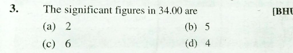 The significant figures in 3400 are (a) 2 (b) 5 (c) 6 (d) 4 The significant figures in 3400 are (a) 2 (b) 5 (c) 6 (d) 4 November 18, 2020 Category: Uncategorised (JEE Advanced Physics by BM Sharma + GMP Solutions) , Facebook Messenger WhatsApp Share this:TwitterFacebook Related