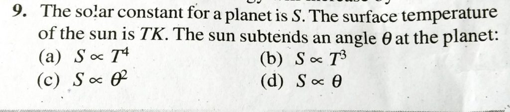 THe solar constant for a planet is S. The surface temperature of the sun is TK. The sun subtends an angle theta at the planet: THe solar constant for a planet is S. The surface temperature of the sun is TK. The sun subtends an angle theta at the planet: October 4, 2020 Category: Uncategorised (JEE Advanced Physics by BM Sharma + GMP Solutions) , Facebook Messenger WhatsApp Share this:TwitterFacebook Related