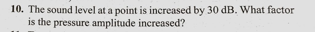 The sound level at a point is increased by 30 dB. What factor is the pressure amplitude increased ? The sound level at a point is increased by 30 dB. What factor is the pressure amplitude increased ? November 8, 2020 Category: Uncategorised (JEE Advanced Physics by BM Sharma + GMP Solutions) , Facebook Messenger WhatsApp Share this:TwitterFacebook Related