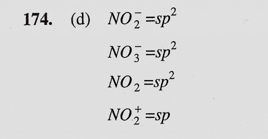 The species in which the N atom is in a state of sp hybridization is (a) NO2 – (b) NO3 – (c) NO2 (d) NO2 + The species in which the N atom is in a state of sp hybridization is (a) NO2 - (b) NO3 - (c) NO2 (d) NO2 + November 28, 2020 Category: Uncategorised (JEE Advanced Physics by BM Sharma + GMP Solutions) , Facebook Messenger WhatsApp Share this:TwitterFacebook Related