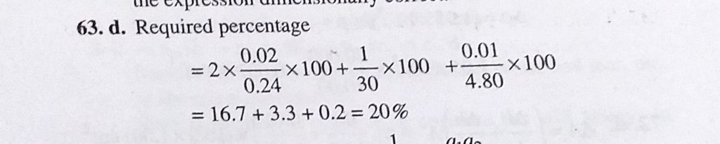 The specific resistance rho of a circular wire of radius r, resistance R, and length l is given by rho = pie r^2 R/L. Given: r = 0.024 +- 0.02 cm, R = 30 +- 1 ohm and and length l is given by rho = pie r^2 R/L. Given: r = 0.024 +- 0.02 cm R = 30 +- 1 ohm and resistance R The specific resistance rho of a circular wire of radius r September 15, 2020 Category: Uncategorised (JEE Advanced Physics by BM Sharma + GMP Solutions) , Facebook Messenger WhatsApp Share this:TwitterFacebook Related