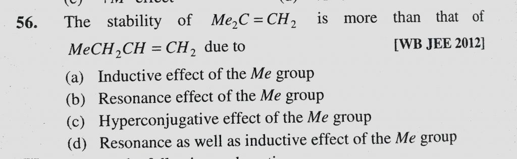 The stability of Me2C = CH2 is more than that of MeCH2CH = CH2 due to (a) Inductive effect of the Me group (b) Resonance effect of the Me group The stability of Me2C = CH2 is more than that of MeCH2CH = CH2 due to (a) Inductive effect of the Me group (b) Resonance effect of the Me group December 9, 2020 Category: Uncategorised (JEE Advanced Physics by BM Sharma + GMP Solutions) , Facebook Messenger WhatsApp Share this:TwitterFacebook Related
