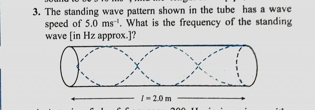 The standing wave pattern shown in the tube has a wave speed of 5.0 m/s. What is the frequency of the standing wave ( in Hz approx.) ? The standing wave pattern shown in the tube has a wave speed of 5.0 m/s. What is the frequency of the standing wave ( in Hz approx.) ? November 6, 2020 Category: Uncategorised (JEE Advanced Physics by BM Sharma + GMP Solutions) , Facebook Messenger WhatsApp Share this:TwitterFacebook Related