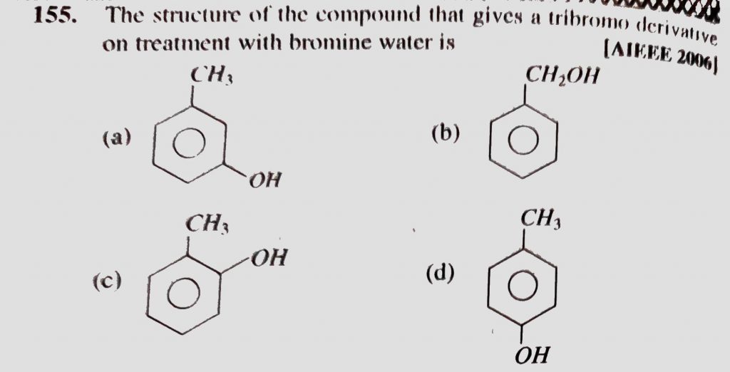 The structure of the compound that gives a tribromo derivative on treatment with bromine water is The structure of the compound that gives a tribromo derivative on treatment with bromine water is February 14, 2021 Category: Uncategorised (JEE Advanced Physics by BM Sharma + GMP Solutions) , Facebook Messenger WhatsApp Share this:TwitterFacebook Related