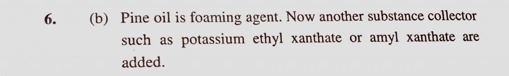 The substance added in water in the froth floatation process is (a) Olive oil (b) pine oil (c) Coconut oil (d) None of the above The substance added in water in the froth floatation process is (a) Olive oil (b) pine oil (c) Coconut oil (d) None of the above November 11, 2020 Category: Uncategorised (JEE Advanced Physics by BM Sharma + GMP Solutions) , Facebook Messenger WhatsApp Share this:TwitterFacebook Related