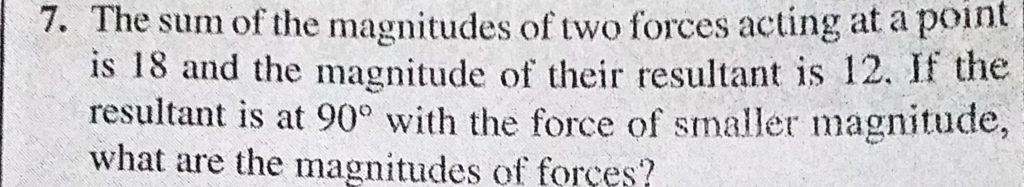The sum of the magnitudes of two forces acting at a point is 18 and the magnitude of their resultant is 12. If the resultant is at 90 with the force of smaller magnitude, what are the magnitude The sum of the magnitudes of two forces acting at a point is 18 and the magnitude of their resultant is 12. If the resultant is at 90 with the force of smaller magnitude what are the magnitude September 16, 2020 Category: Uncategorised (JEE Advanced Physics by BM Sharma + GMP Solutions) , Facebook Messenger WhatsApp Share this:TwitterFacebook Related