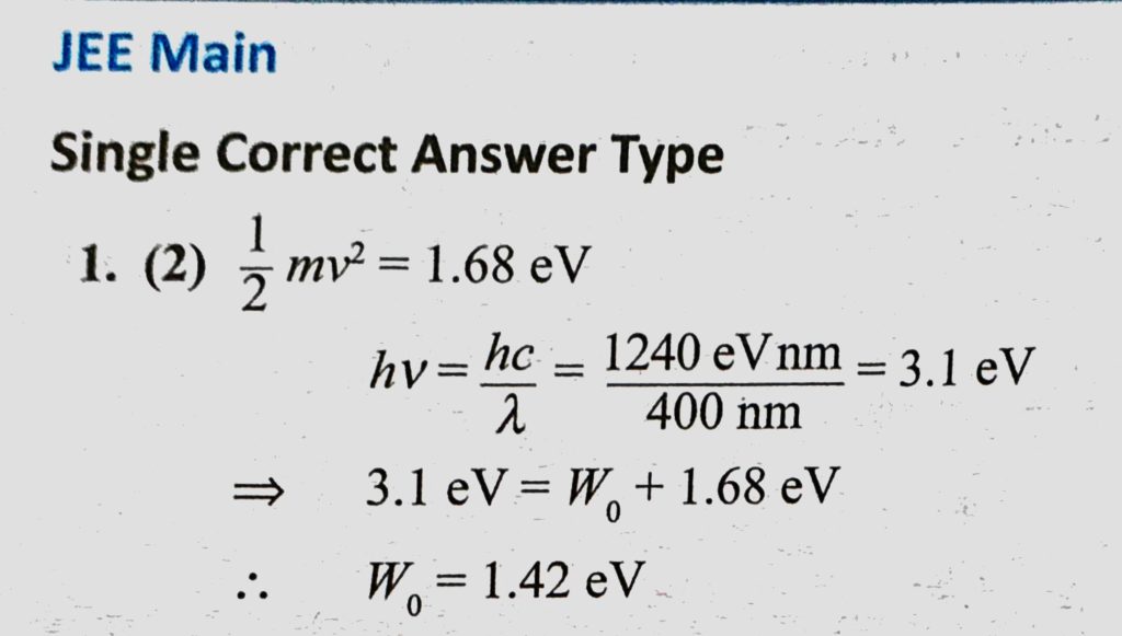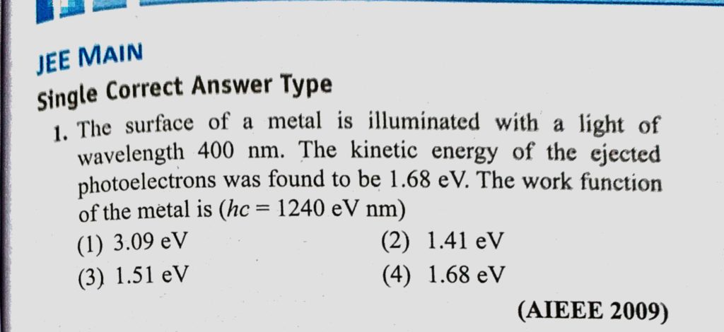 The surface of a metal is illuminated with a light of wavelength 400 nm. The kinetic energy of the ejected photoelectrons was found to be 1.68 eV. The work function of the metal is The surface of a metal is illuminated with a light of wavelength 400 nm. The kinetic energy of the ejected photoelectrons was found to be 1.68 eV. The work function of the metal is October 14, 2020 Category: Uncategorised (JEE Advanced Physics by BM Sharma + GMP Solutions) , Facebook Messenger WhatsApp Share this:TwitterFacebook Related